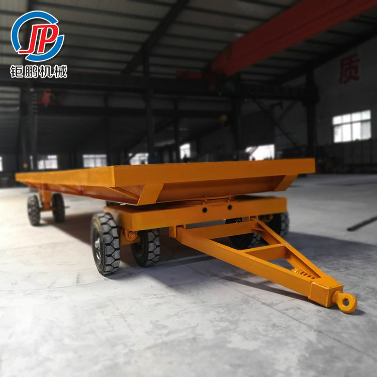 鉅鵬機械:0531-84427777所生產的平板車是一種叉車牽引式平板車18678652789,適用于廠內運輸車輛。又稱電動平車、臺車、過跨車。它具有結構簡單、使用方便、容易維護、承載能力大、污染少等優點。廣泛用于機器制造和冶金工廠,作為車間內部配合吊車運輸重物過跨之用。P系列電動平車高度低,臺面加強,改型容易,維修方便。